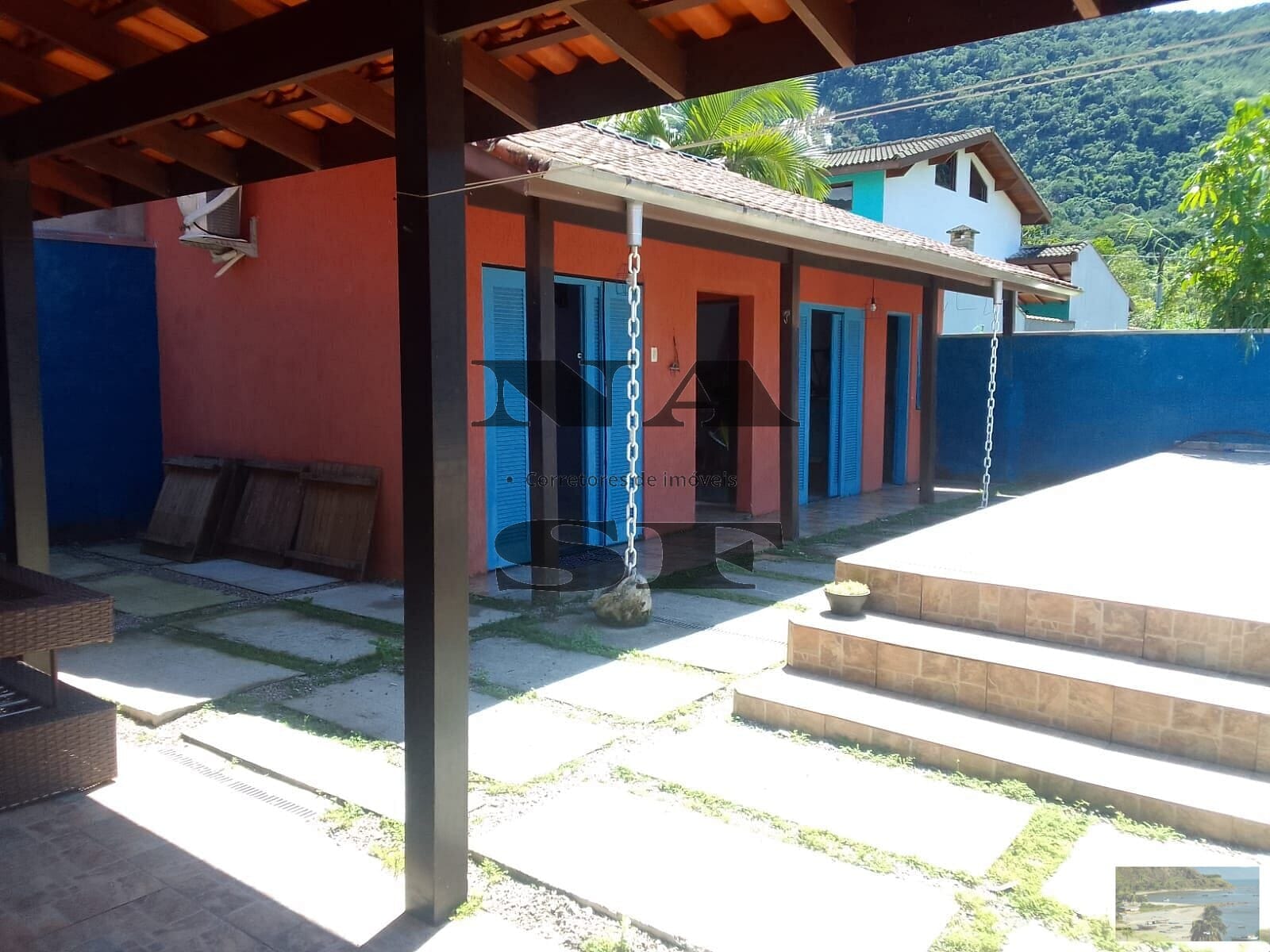 Sobrado à venda no condomínio Mar Verde II - Praia da Mococa Portaria 24 horas, paisagismo e muita segurança. A casa têm ótima localização, em frente a uma praça muito arborizada. Na parte inferior é composta por sala de estar, um dormitório, um banheiro, copa e cozinha. Na parte superior possui dois dormitórios com sacada para a piscina e vista para as montanhas e um banheiro. Nos fundos, possui mais dois dormitórios, um banheiro e lavandeira. Área de churrasqueira e piscina com deck de madeira. Vagas para 4 carros. Escritura definitiva. Os móveis estão inclusos na venda exceto eletrônicoseletrodomésticos, utensílios de cozinha e objetos de decoração. Aceita apartamento no bairro do Massaguaçu com dois ou três dormitórios como parte de pagamento. ate 500 mil. nbsp; nbsp;Agende sua visita As informações estão sujeitas a alterações. Consulte o corretor responsável. <br> Detalhes: